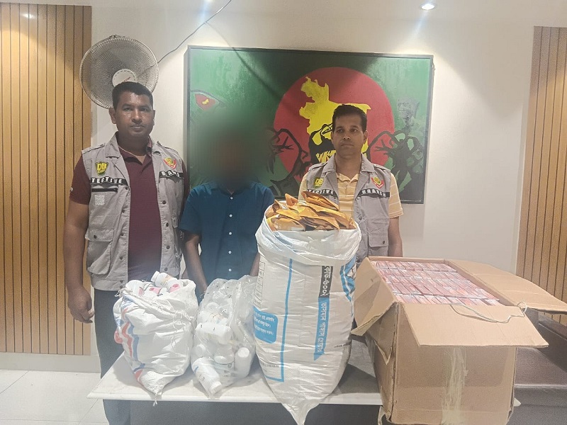 গ্রেফতারকৃত ব্যক্তির নাম মোঃ রাজু মিয়া (২৩)। এ সময় তার হেফাজত হতে ১১৩ প্যাকেট নকল ‘অর্গানিক মাখা পাউডার’, ৯৫ প্যাকেট নকল ‘ন্যাচারাল হেলথ সাপ্লিমেন্ট’, ১৫টি প্লাস্টিকের কৌটায় নকল ‘গ্যাসট্রিক ক্লিয়ার’, ২০টি নকল ‘ডায়াকোর্স’ ঔষধ, ২৫টি খালি প্লাস্টিকের কৌটা (‘ডায়াকোর্স’ লেখা), ৪০টি ‘গ্যাসট্রিক ক্লিয়ার’ , ৪০টি ‘ডায়াকোর্স’ লেবেল, একটি মোবাইল ফোন ও একটি ডিজিটাল স্কেল উদ্ধার করা হয়।