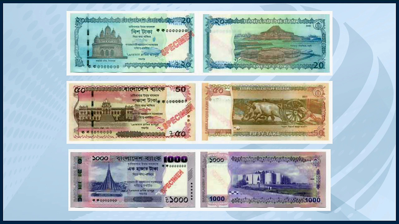 নতুন ডিজাইন ও সিরিজের ১০০০, ৫০ এবং ২০ টাকা মূল্যমানের কাগুজে নোট আগামী ১ জুন থেকে বাজারে ছাড়ছে বাংলাদেশ ব্যাংক। গভর্নর ড. আহসান এইচ মনসুর স্বাক্ষরিত এই নোটগুলো প্রথমে বাংলাদেশ ব্যাংকের মতিঝিল অফিস থেকে ইস্যু করা হবে এবং পর্যায়ক্রমে অন্যান্য অফিস থেকেও সরবরাহ করা হবে।